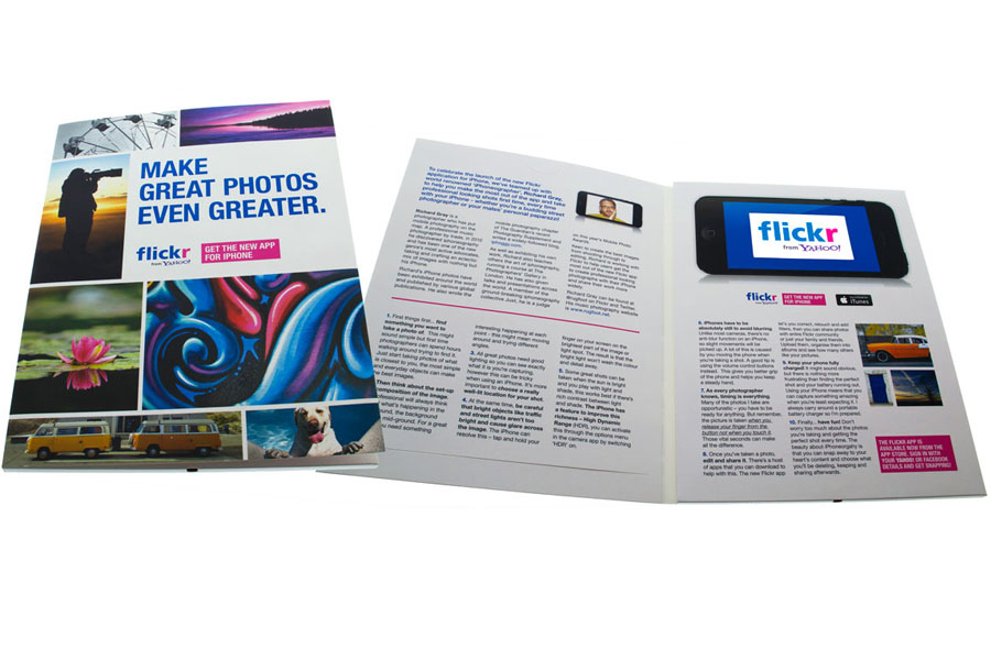 Om de lancering van de nieuwe Flickr applicatie voor de iPhone te vieren, die het bedrijf samen met de wereldberoemde iPhoneographer Richard Gray ontwierp, maakte Flickr een brochure met TV in a Card om mensen te inspireren Flickr te gebruiken.