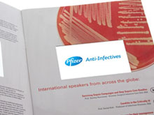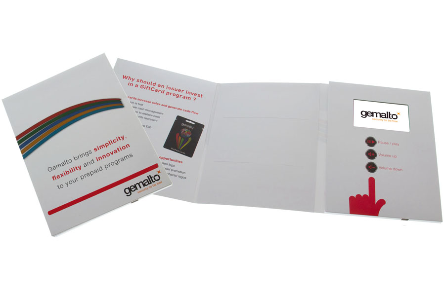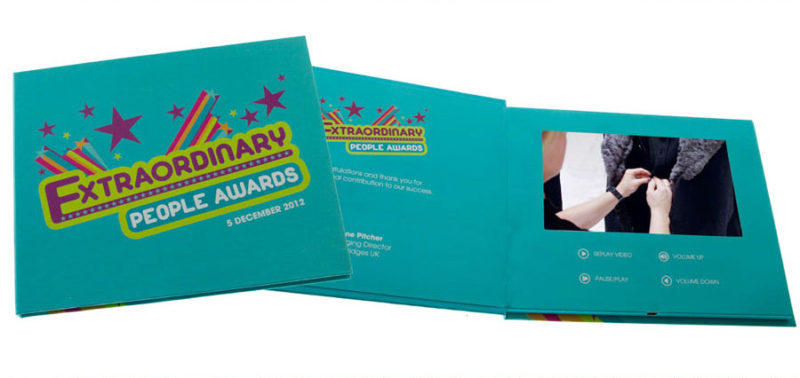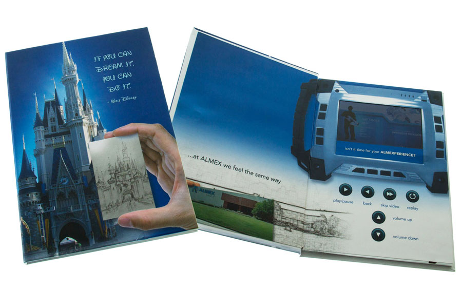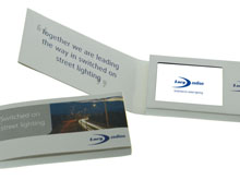 Pfizer used a TV in a Card 16 page brochure to show a conference to the people who could not attend.