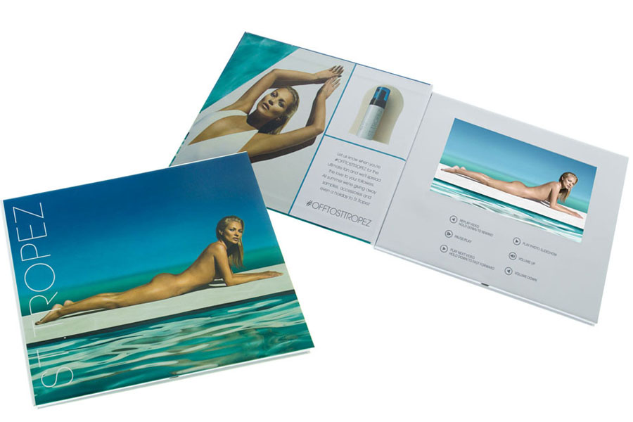 RZ Cussons used our 7" hard cover cards for the press launch of the ST Tropez brand with Kate Moss.